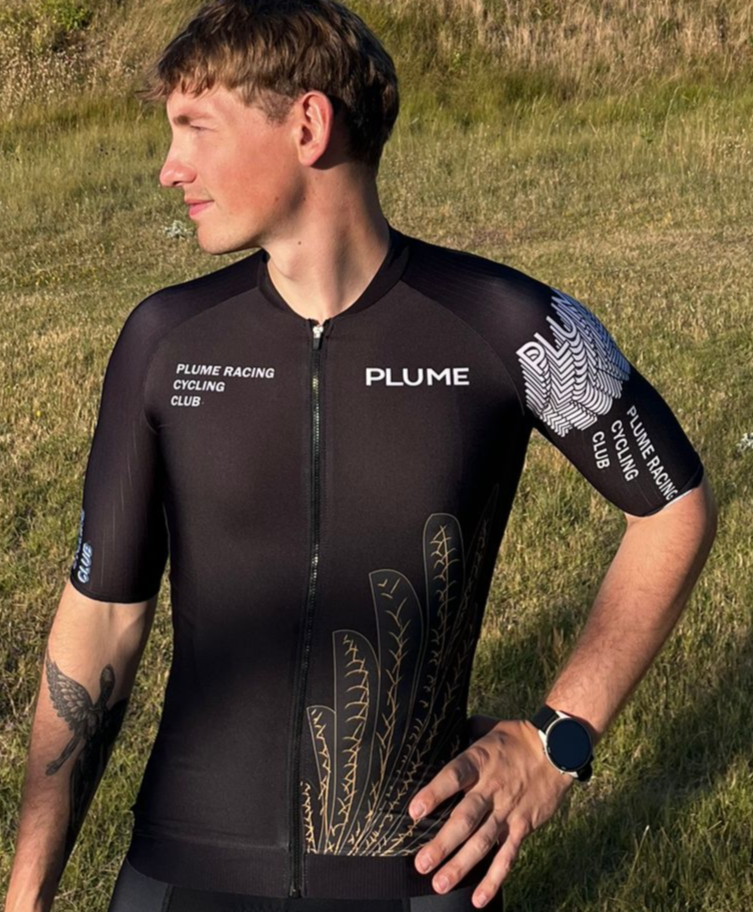 Élégant, racé, intemporel : le Plume Doré incarne l’essence même du raffinement sportif. Sur une base noire profonde, des plumes dorées stylisées s’élèvent avec délicatesse sur le flanc et le bas du dos, évoquant noblesse, fluidité et détermination. Le logo PLUME à l’arrière, dans une typographie architecturée, renforce son caractère graphique et premium.
