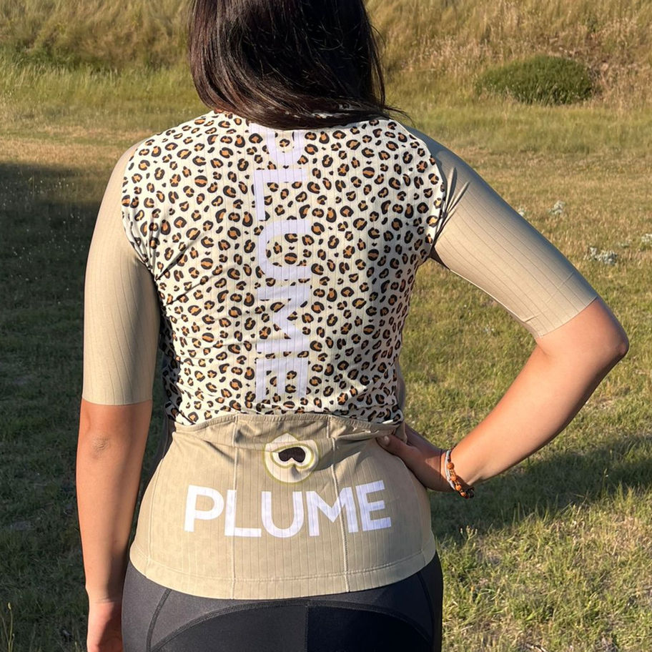 Exprimez votre tempérament sur le vélo avec le maillot Léo, une pièce audacieuse où l’allure féline rencontre la performance de haut niveau. Son imprimé léopard soigneusement travaillé sur fond crème capte l’œil tout en conservant une esthétique raffinée.